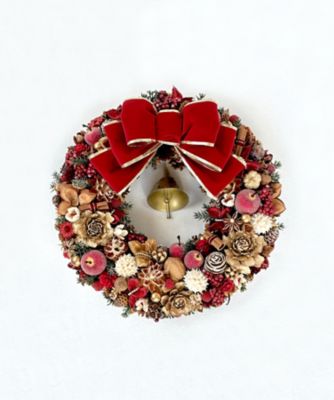 赤とナチュラルカラーの木の実に上質で深みのある赤いリボンをあしらった存在感のあるリースが空間を一気にクリスマスの雰囲気に彩ってくれます。大切な方へのギフトにもぴったりなリースです。【トロッケンクランツとは】ドイツやオーストリア発祥の伝統工芸を現代風にアレンジした木の実やスパイスのクラフトです。ボンドで貼るのではなく、1つ1つ木の実にワイヤーをかけてしっかり組みながら制作するため丈夫で長くお楽しみいただけます。/ホーム・キッチン&アート インテリア雑貨 ウォールアクセサリー <enbloom>木の実とスパイスのリース
