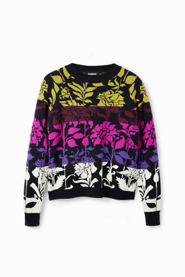 ハイゲージニット素材の長袖ジャカードセーター。多様な色彩の花柄デザインで仕上げました。【Desigualデシグアル】バルセロナ発のファッションブランド<Desigual(デシグアル)>。スペイン語で"他とは違う"という意味が現すとおり、他のブランドにはない地中海をイメージさせるカラフルな色使いやエキゾチックなパターン、パッチワークやデニムなど着る人の個性を引き立てるアイテムを展開。デイリーにも、ドレスアップにも活躍する幅広いデザインが魅力。レディースだけではなく、メンズやシューズなど幅広いラインナップを展開。ブランド名にもなっているDesigual(他とは違う)は、自分自身が他の人と違うことがどれだけ大切で楽しいことなのかを改めて感じてもらいたいという私たちの願いが込められています。 自由で楽しく、カラフルで前向き。本当の自分を呼び覚ます鮮やかなカラーやプリント、他とは一味違うスタイルはファッションを楽しくするものばかりです。/レディース トップス ニット・セーター ジャカード 花柄セーター