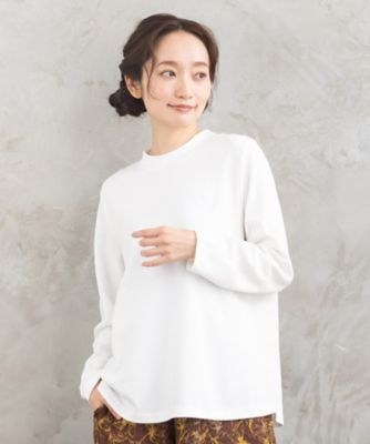 《デザイン》シンプルなコーディネートでもおしゃれに見えるロンT。後中心のスリットが軽やかな抜け感を演出します。詰まり過ぎないネックライン、程よいオーバーサイズで身体のシルエットを拾いません。袖はレイヤードした時に、もたつかないようにスッキリ仕上げています。一枚着で着た時も腕回りがスッキリと見えます。着丈は前後で差をつけたラウンドヘムにしました。ヒップが隠れるのも嬉しいポイントです!トレーナーやニットのインナーとしても使えてデイリーに大活躍間違いなし!《素材》柔らかくて軽く通気性が良いコーマ糸の綿天竺です。コーマ糸は通常の綿糸より繊維が細かく毛羽立ちが少ないため滑らかな手触りが特長です。お手入れが簡単でデイリーに着られます。……………………透け感:ほぼ無し厚さ:普通伸縮性:あり光沢感:なし裏地:なし洗濯方法:洗濯機(弱)OK & hellip;…………………/レディース トップス Tシャツ・カットソー 裾スリット ロングTシャツ(1260CM02)