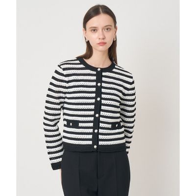 <ワイドシルエットのシアーニットプルオーバー>清涼感のあるシアー素材のボーダー柄が、爽やかな印象のニットプルオーバー。ゆとりのあるシルエットと肌離れの良い素材で汗ばむ季節にも最適です。カジュアルなアイテムながら、ボートネックデザインにすることで首周りを美しく見せ、上品な印象に。【素材】毛羽立ちが少なく軽量なシアー素材。シャリ感があり肌にまとわりつかないさらっとした風合いが特徴です。おすすめ着用期間:春/夏※36サイズはオンラインストア、ジェイアール名古屋タカシマヤ店、山形屋店のみでのお取扱いになります。※この商品はサンプルでの撮影を行っています。実際の商品とイメージ、仕様が異なる場合がございます。/レディース トップス ニット・セーター シアーボーダーワイドニット(H5N12510__)