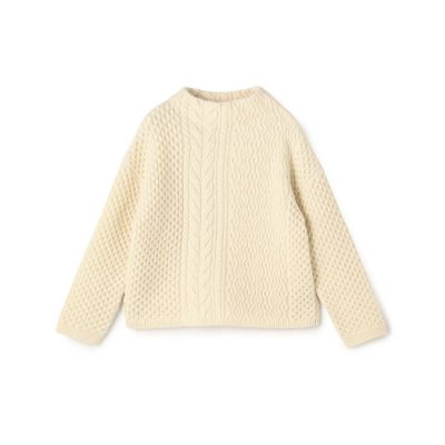 伝統的なアラン柄をコンビネーション使いした、計算された細やかで凹凸のある表面感が特徴的なニットプルオーバー。良質なウール糸で編み上げたソフトな肌触りと軽やかな着心地が魅力です。ゆったりとしたシルエットにドロップショルダーでリラックスした大人のバランスに。控えめに立ち上がるネックラインが華奢な首元を演出してくれます。コンパクトな丈感でスリムにはもちろん、ワイドパンツやロングスカートなどとも相性抜群。ほど良く存在感があり、秋冬のカジュアルスタイルに幅広く活躍してくれるアイテムです。※商品の色味は、商品単体または素材アップ画像をご確認ください2025AW商品店舗にお問い合わせの際は、下記の商品番号をお申し付けください。商品番号:12-02-54-02703※※お取扱い上の注意※※ソフトでデリケートな素材を使用しています。毛玉ができやすい為、着用後はホコリをはらい、毛羽乱れを整えるブラッシングがおすすめです。取り除く場合は引っ張らず、毛玉取り器やハサミで丁寧にカットしてください。MACPHEE/レディース トップス ニット・セーター アランニット ビルドネックプルオーバー