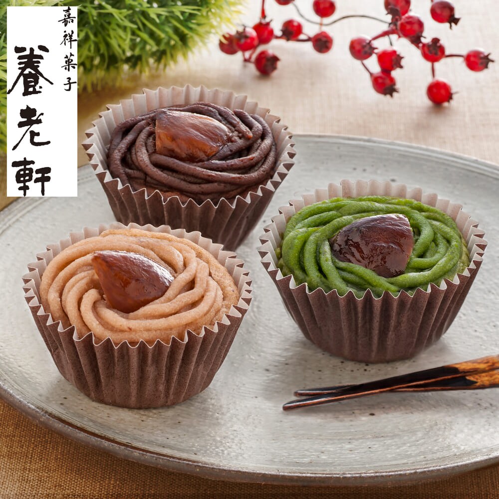 【ベルメゾン】【お歳暮・おとりよせ】 京都 養老軒 渋皮栗の焼きモンブラン 【ご注文は12月16日まで】・栗・抹茶・チョコの3種の焼きモンブラン。・それぞれの優しい甘さを食べ比べできる詰め合わせです。・ほっこりとした甘いひとときをお過ごしください。【おとりよせ】【お歳暮ギフト】