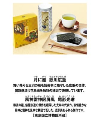 月に雁 歌川広重/風神雷神図屏風 尾形光琳コクとまろやかさが際立つ静岡掛川産煎茶と、パリッと香ばしい焼海苔の詰合せ。選び抜かれた素材が織りなす上質な味わいを、大切な方への贈り物にぜひご利用ください。【A295353】 ※原材料・添加物・特定原材料(アレルギー)などの情報を確認いただけます。※別のサイトへ遷移します。/飲料 日本茶 日本茶