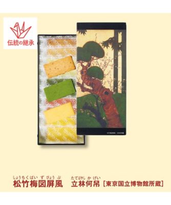 松竹梅図屏風 立林何帛世界農業遺産認定の宮城県大崎耕土産の米粉を使用した5種のクッキー。吉祥を表す松竹梅を大胆な構図で描いた立林何帛の名作パッケージでお届けします。三越伊勢丹のお歳暮カタログ掲載商品【A349383】 ※原材料・添加物・特定原材料(アレルギー)などの情報を確認いただけます。※別のサイトへ遷移します。/洋菓子・ケーキ・アイスクリーム クッキー・サブレ その他クッキー・サブレ