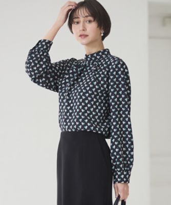 【デザイン】チェックのような、お花のような、ビンテージ感のあるコツキ柄でおつくりしたプリントプルオーバーブラウス。少し甘さのある柄を使用しているので、デザインは甘くなりすぎないようにVネックにしております。タックの入り方も少しイレギュラーに入るようにし、可愛らしくなりすぎないよう袖もつまみタックを入れてポイントにしております。※同素材のスカート(101-73860)とセットアップとしてお召しいただけます。【素材】軽やかでドレープ性のあるポリエステルシフォン下地に、イタリアのヴィンテージ図案をプリントした素材です。※照明の関係により、実際よりも色味が違って見える場合があります。また、パソコン・スマートフォンなどの環境により、若干製品と画像のカラーが異なる場合もございます。/レディース トップス シャツ・ブラウス 【マシンウォッシュ可/セットアップ可】コツキ柄プリントブラウス(2002465771)