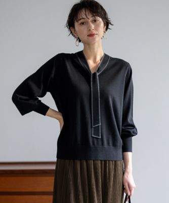 【ウォッシャブル】【着用推奨シーズン:秋・冬】<素材説明>イタリアZEGNA BARUFFA社の素材です。細番手のウールを使用した柔らかくしなやかな肌触りと、美しい光沢感が特徴です。<デザインポイント>綺麗な表面感が上品な印象のニットジレです。衿と編み続きのボウタイを、衿もとでリボンにすると品よく華やかな印に、低めの位置で前に垂らすとスッキリとシャープに印象の異なるスタイリングをお楽しみいただけます。同素材のリブプルオーバー(品番:G5N06601)や、ブラウス、Tシャツとのコーディネートがお勧めです。※この商品はサンプルで撮影を行っています。実際の商品とイメージ、仕様が異なる場合がございますので予めご了承ください。/レディース トップス その他トップス クリアニットジレ(G5N03601__)