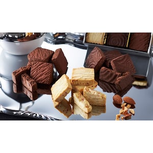 ベルギーチョコレートとアーモンドプードルを使い、外はさっくり、中はしっとりと焼き上げたサクホロ食感の焼きチョコ。夏場でも溶けにくく、贅沢な風味、食感を味わうことのできる小麦粉不使用のチョコレートです。