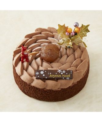クリスマスらしいマロンとチョコレートの贅沢なマリアージュ。黒糖風味のしっとりとしたスポンジが奥行きのある味わいを生み出し、砕いたマロングラッセ入りのマロンクリームを優しく包み込みます。世界的に流行している花模様の絞りが印象的です。