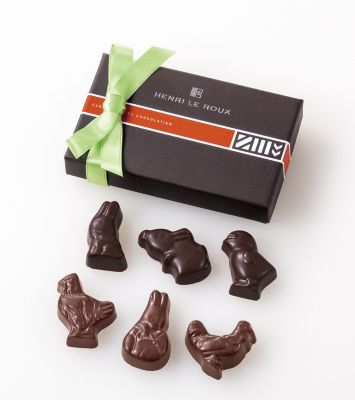 フランスのアンリ・ルルー店舗で人気のパック(イースター)限定ボンボン・ショコラが日本初登場! アーモンドとヘーゼルナッツの自家製プラリネをショコラ・ノワールでコーティングし、うさぎやにわとりなど可愛らしい見た目に仕上げました。ノワールとレ、2種類の味わいをお楽しみいただける詰合せです。 ※画像は組み合わせの一例です。