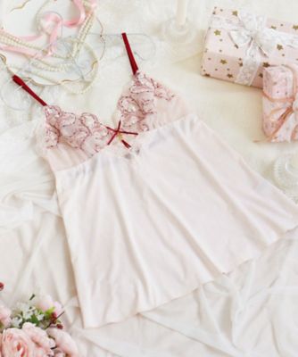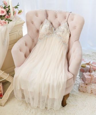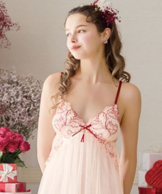 【きらめく小花とハートで私だけのときめきを】キラキラと輝く繊細な小花たちを散りばめた、リサマリのバレンタインシリーズです。レースにはさりげなくハートデザインを刺繍して、バレンタインのエッセンスを少し取り入れた、上品で清楚な印象に。普通糸とラメ糸、厚みのあるウーリー糸を使用することで、大人っぽくも豪華な柄行きに仕上がりました。リボンにはタッセルをイメージした3連のハートチャームをあしらい、特別感を演出。身生地は胸下切り替えのレースとふんわり広がるチュールをたっぷりとあしらい、女の子らしいフレアシルエットに。身体のラインを拾いにくい、ゆったりとしたサイズ感も魅力です。カラーはちょっぴり大人なスウィーツをイメージした、バレンタイン気分を盛り上げてくれるコレクションです。<アイテム特徴・着用感>カップがついたタイプのマキシワンピースなので、ブラジャーを着けずにこれ1枚でご着用いただけます。身生地はチュール素材を使用しており、肌側には綿混素材を重ねた、さらりとした気持ちの良い着心地です。<サイズ>M:バスト 79~87cm(総丈:約110cm)L:バスト 86~94cm(総丈:約110cm)<商品仕様>・ストラップ長さ調節可能(取り外し不可)・身生地の伸縮性:若干あり・取り外し可能薄手カップ付属(ウレタン製)<関連アイテム>お揃いのアイテムは以下よりご確認ください。・65170 ブラジャー(B・C)・65171 ブラジャー(D・E・F)・65172 ブラジャー(G・H・I)・75170 ノーマルショーツ・75171 レースショーツ・75173 フレアショーツ・75176 サニタリー・35170 キャミソール・25171 タップパンツ・15174 カップ付マキシワンピース※照明の関係により、実際よりも色味が違って見える場合があります。また、パソコン・スマートフォンなどの環境により、若干製品と画像のカラーが異なる場合もございます。/レディース 下着・パジャマ・ルームウェア スリップ フローチェ カップ付マキシワンピース(2002582138)