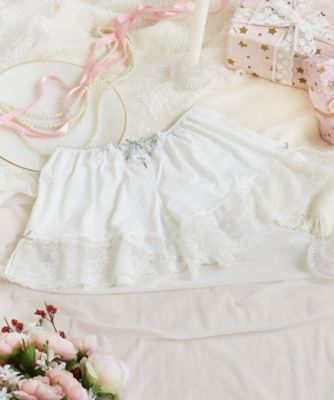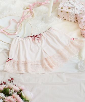 【きらめく小花とハートで私だけのときめきを】キラキラと輝く繊細な小花たちを散りばめた、リサマリのバレンタインシリーズです。フロントレースにはさりげなくハートデザインを刺繍して、バレンタインのエッセンスを少し取り入れた、上品で清楚な印象に。普通糸とラメ糸、厚みのあるウーリー糸を使用しました。裾にはストレッチレースを贅沢にほどこして、サイドにはスリットとリボンをあしらい、細部まで心ときめくデザインをお楽しみいただけます。お揃いのキャミソールとのコーディネートがおすすめです。カラーはちょっぴり大人なスウィーツをイメージした、バレンタイン気分を盛り上げてくれるコレクションです。<アイテム特徴・着用感>身生地はすべりがよい素材を使用しており、さらりとした気持ちの良い着心地です。伸縮性があり、ご着用していてストレスを感じにくい仕様になっております。<サイズ>M:ヒップ 87~95cm(総丈:約30cm)L:ヒップ 92~100cm(総丈:約30cm)<商品仕様>・身生地の伸縮性:あり・ウエスト部分ゴム内蔵<関連アイテム>お揃いのアイテムは以下よりご確認ください。・65170 ブラジャー(B・C)・65171 ブラジャー(D・E・F)・65172 ブラジャー(G・H・I)・75170 ノーマルショーツ・75171 レースショーツ・75173 フレアショーツ・75176 サニタリー・35170 キャミソール・25171 タップパンツ・15174 カップ付マキシワンピース※照明の関係により、実際よりも色味が違って見える場合があります。また、パソコン・スマートフォンなどの環境により、若干製品と画像のカラーが異なる場合もございます。/レディース 下着・パジャマ・ルームウェア ペチコート・フレアパンティ フローチェ タップパンツ(2002582137)