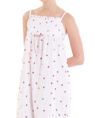 【素材】綿100%のガーゼを2枚重ね合わせて作られた素材の「コットンダブルガーゼ」。赤ちゃんの産着としても使われているほど、お肌に優しく、洗うたびに柔らかく馴染んでいきます。通気性、吸水・吸湿性に優れた生地で、汗をすばやく吸収し、発散してくれる為寝汗による不快感や冷えを防止します。また、肌を冷やす原因となる湿度を放出し、暖かい空気を生地の中に溜め込むことができます。オールシーズン人気の素材で、上質な眠りの為の素材として推奨しています。【デザインポイント】ギャザーをふんだんに寄せた、Aラインがきれいなキャミソールドレス。コットン素材でお風呂上がりにもおすすめです。胸元はシャーリングの立体感で胸の当たりをカバーし、透け感も気になりにくい2枚仕立てです。肩紐は柔らかな細幅のゴムをサテンで包み、肌あたりもよく、着用時に肩から落ちるストレスを軽減させた仕様にこだわりました。様々な体型の方にピッタリとフィットします。動くたびにゆらゆら揺れるリボンもポイントです。※照明の関係により、実際よりも色味が違って見える場合があります。 またパソコン・スマートフォンなどの環境により、製品と画像のカラーが若干異なる場合もございます。型番:26-11016/レディース 下着・パジャマ・ルームウェア パジャマ・ルームウェア コットンダブルガーゼいちごキャミソールドレス 26ー11016