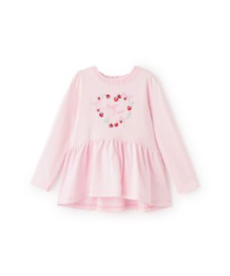 小さないちごとリボンの繊細な刺しゅうが入った長袖Tシャツです。首元のフリルで可愛らしいデザインに仕上げました。やさしい肌触りの綿素材を使用しており、着心地も快適。ウエストからふわっと膨らむペプラムシルエットで、レギンスやパンツとも好相性です。内側にお名前を記入できるタグつき。<mezzo piano/メゾピアノ>華やかさと上質感をイメージしたブランドです。甘すぎない可愛さ、女の子の心をときめかせるシルエット、マテリアル、グラフィックなどさまざまにこだわり、カジュアルウェアからフォーマルドレスまで幅広く展開しています。型番:6361205/ベビー&キッズ 子供服(ガールズ) Tシャツ・カットソー イチゴ刺しゅう ペプラム長袖Tシャツ 6361205