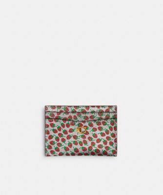 エッセンシャル カード ケース・ストロベリー プリント・ フォイル メタリック レザー・ カードスロット x 5・ 縦7.5cm x 横11cmキャッシュレス派にとって財布代わりにもなる、エッセンシャル カードケースです。鮮やかないちごのプリントを施した、艶やかな光沢のあるフォイル メタリック レザーで作り上げました。コーチの"C"のハードウェアがアクセントを添えます。どれくらい収納できますか?カードスロット4つに加え、中央のポケットにカードやキャッシュを収納可能です。使い心地はどうですか?下段スロットにカーブを設け、カードの出し入れがしやすい設計。スリムな形状で持ち運びにも便利です。どんなスタイルに合いますか?華やかなプリントが映えるデザインで、バッグの中のアクセントとしても楽しめます。※ご使用のパソコンやスマートフォンの画面設定や機種により実際のカラーと異なって見える場合がございます。※カラー名は管理用の表記であり、タグの表記と異なっております。【COACHについて】1941年にニューヨークで創立したグローバルファッションブランドです。美しさと機能性を兼ね備えたコーチ製品には、熟練したクラフトマンシップが細部にまでに行き届き、最高の使い心地とスタイルをお届けします。ジェンダーレスに使えるデザインも豊富に揃え、ギフトでもたくさんのお客様にお選びいただいています。クリエイティブ・ディレクターのスチュアート・ヴィヴァースのビジョンと、私たちのホームタウンであるニューヨークの、誰をも受け入れる姿勢(インクルーシブ)、そして勇気ある精神にインスパイアされ、誰もが自分らしくいられるように、永く愛される美しいものづくりを行います。/レディース 財布・小物・ベルト カードケース・名刺入れ エッセンシャル カード ケース・ストロベリー プリント