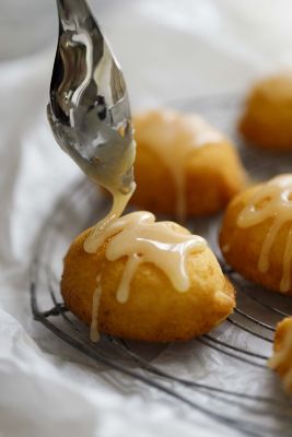 米粉を使った生地にレモンのコンフィチュールを忍ばせて焼いたレモンケーキ。コンフィチュールは果肉の食感が残るように作ってあって、噛むとレモンの爽やかな香りがパッと広がります。アイシングの甘さも程よく、軽やかで歯切れの良い生地とレモンの香りが相まって、後味は甘酸っぱく爽やか。贈り物にもおすすめです。【調理時間の目安】解凍:常温で約1時間