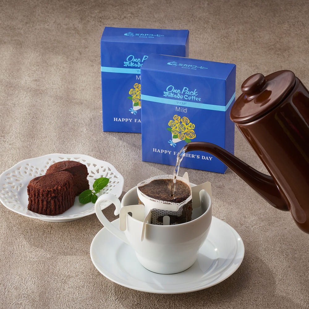 ミディアムボディのマイルドな苦味の珈琲と、珈琲に良く合うしっとり濃厚なチョコレートの焼菓子をセットにしました。父の日コーヒー…香ばしく華やかな甘い香りと、ミディアムボディのマイルドな苦味にコロンビア特有のコクが凝縮した味わいです。トリュフショコラケーキ…1948年、東京・日本橋創業の老舗コーヒーロースターがお届けする、しっとり濃厚なチョコレートの焼菓子です。ミカド珈琲軽井沢旧道店でも大人気のスイーツメニューで、コーヒーや紅茶との相性も抜群です。※お届け時期は2023年6月14日(水)~6月18日(日)となります。お届け日のご指定はいただけません。※注文締切日:6月12日(月)