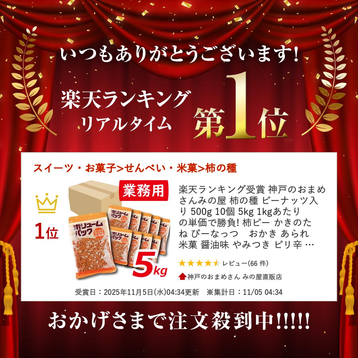 楽天ランキング受賞 神戸のおまめさんみの屋 柿の種 ピーナッツ入り 500g 10個 5kg 1kgあたりの単価で勝負! 柿ピー かきのたね ぴーなっつ おかき あられ 米菓 醤油味 やみつき ピリ辛 おやつ おつまみ スナック 健康 箱売り 大容量 業務用 チャック袋入り みのや